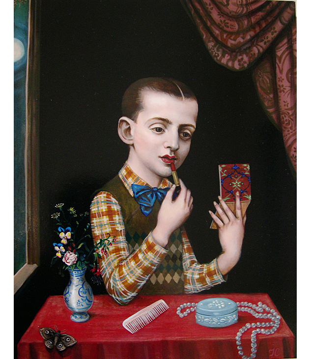 Cummings' work is more polished now and the details of his paintings are exquisite. He is a successful artist that shows nationally. He has a fascination with period detail and costumes. His children have 5 o'clock shadows and his adults have doll's bodies. Both seem to have wounds of experience and dark knowledge.