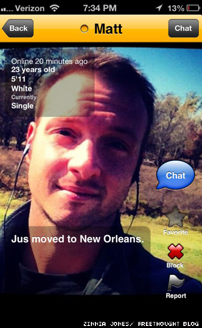 Christian Post blogger Matt Moore was first spotted on Grindr by Huffington Post blogger Zinnia Jones, who received a tip from a reader of her page at Freethought Blogs. Moore eventually confirmed that it was his profile.