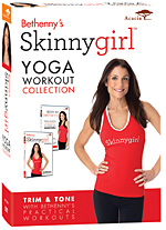 Bethenny’s Skinnygirl Yoga Workout Collection (Acacia): Consider this DVD set the perfect two-fer. It offers up Body by Bethany, in which the Real Housewife turned women's health expert is joined by celebrity trainer Kristin McGee for a 40-minute ab-blasting yoga program, a 10-minute strength training workout, and 5-minute booty blast. The second DVD features Bethenny's Skinnygirl Workout, a series of quick little yoga moves led by pilates and yoga trainer Mike McArdle. (AcaciaLifestyle.com)
