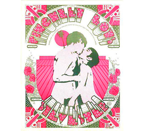 The concerts and the Nocturnal Dream Shows were famed as much for their audiences — queers, beatniks, intellectuals — as for the performers, and Drexler's posters could be found on the kitchen walls of hippies, freaks, and gay men all over the city. As time passed and the success of the shows increased, the posters evolved from single color pen-and-ink drawings on inexpensive white paper to multicolored and color-separated images using mixed media and photography.