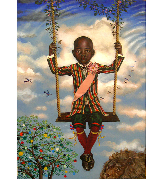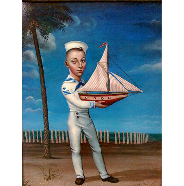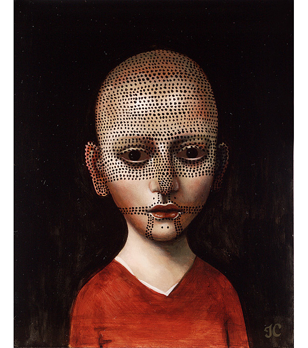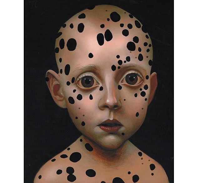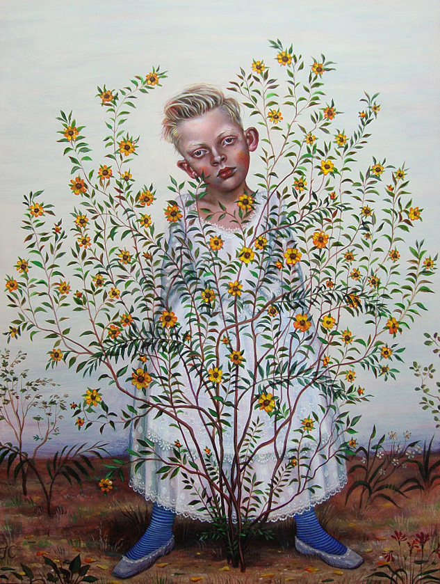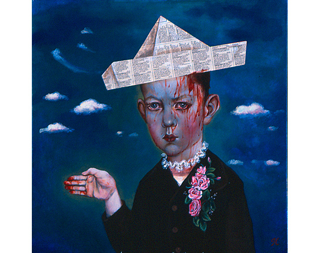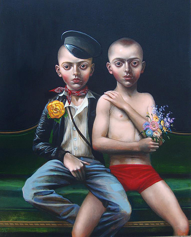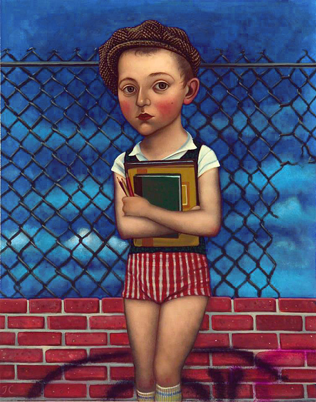 Cummings' work is more polished now and the details of his paintings are exquisite. He is a successful artist that shows nationally. He has a fascination with period detail and costumes. His children have 5 o'clock shadows and his adults have doll's bodies. Both seem to have wounds of experience and dark knowledge.
