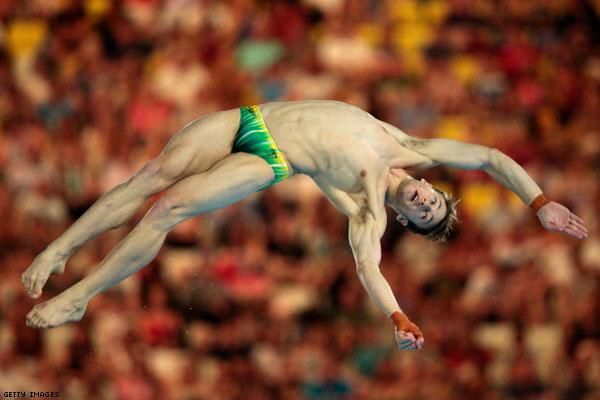 Australian diver Matthew Mitcham said he would dive naked if he successfully defended the gold medal he won in Beijing during the 10-meter platform dive. Unfortunately, he may have known it wouldn't happen. He placed 13th. Shortly after being edged out of the final, he tweeted, "Ah nuts, missed the finals by #theskinofabeespenis."