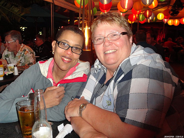 Two women who traveled from Florida’s lesbian village, Carefree Resort, to the Olivia Cruise, which took off in Fort Lauderdale. Rosie Koch and Marilyn Shanahan were on their first Olivia cruise.
