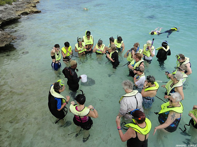 A group of cruisers feeds stingrays.