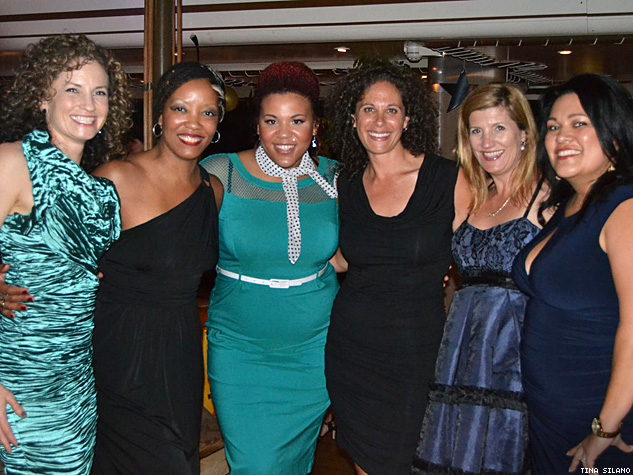 Olivia Travel's founders Judy Dlugacz and Rachel Wahba (third from right) party down with performers Michele Balan and Sweet Baby Ja'i and friends,