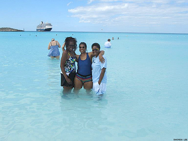 Audrey, Rhona, and Steph get wet in the Bahamas.