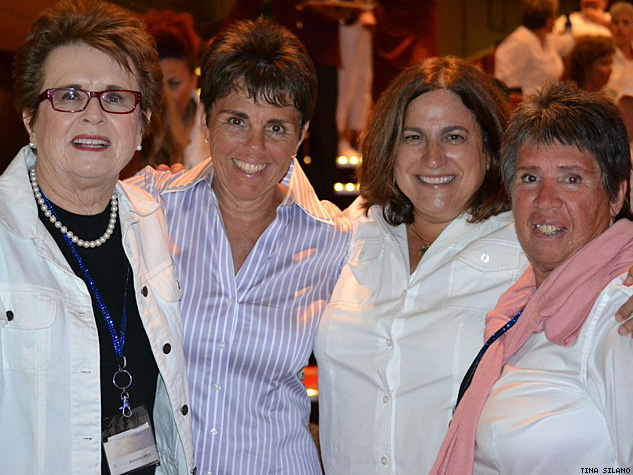 Tennis legend Billie Jean King (far left) and Olivia Travel founder Judy Dlugacz (second from right) with friends