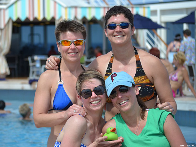 The Advocate joined the Olivia women on the 40th Anniversary Southern Caribbean Cruise, a set of two cruises that went to Aruba, Curacao, and a private island in the Bahamas in January and February. More than 4,200 women were joined by 20 entertainers (from women's music legends Cris Williamson, Teresa Trull, and Meg Christian to comics Vickie Shaw, Kate Clinton, and Elvira Kurt) and a handful of powerful lesbian leaders including tennis legend Billie Jean King, DOMA plaintiff Edie Windsor, military pioneer Col. Margarethe Cammermeyer, and, in a surprise appearance, former Army colonel Tammy Smith, who was promoted to brigadier in late 2012, making her the first general officer to come out while serving, post-"don't ask, don't tell."