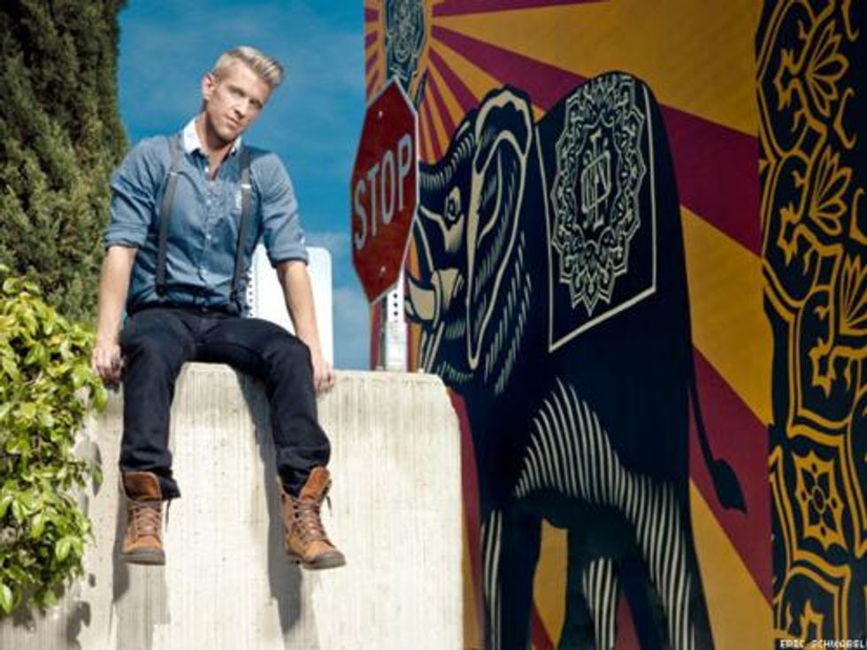 The desire to provoke comes naturally to the singer-dancer, who also has an extensive portfolio as an underwear model. It might also have rubbed off from his association with another pair of rule-breakers he's worked alongside recently: Adam Lambert at his controversial 2009 American Music Awards performance and Lady Gaga in her "Born This Way" video. Munich also helped carry Gaga's famous egg vessel when she arrived at the Grammy Awards last year.