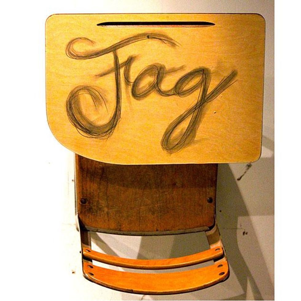 What I Wish I Had Engraved in My School Desk, 2014, school desk, graphite, engraving ink