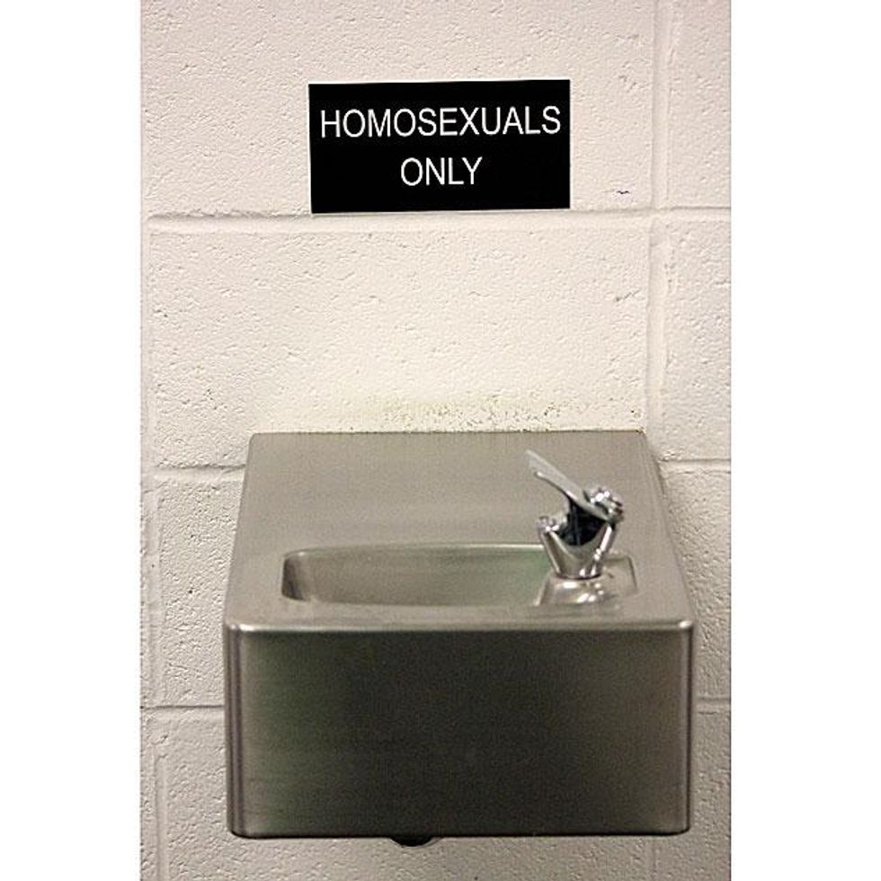Privilege, 2012, water fountain, signage