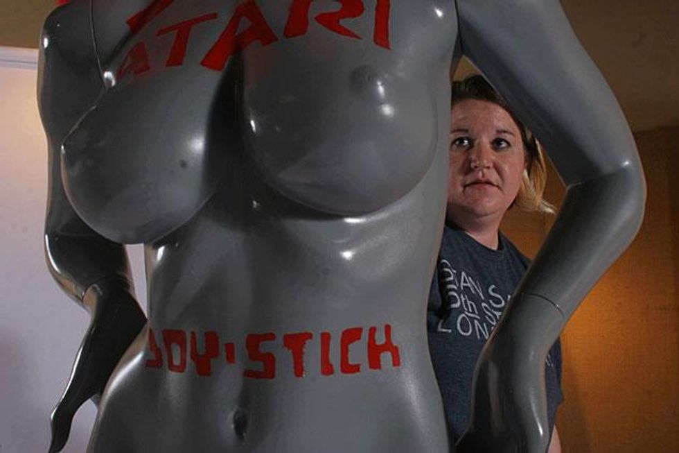 St. Louis sculptor Deborah Alma Wheeler is at her most subversive when appropriating the simplest found objects: water fountain, baseball bat, rearview mirror. She recombines the everyday objects to make giddy 3-D political cartoons that take the viewer on a ride. The work is funny, aggressive, and nervous-making all at once, especially if you have a penis.