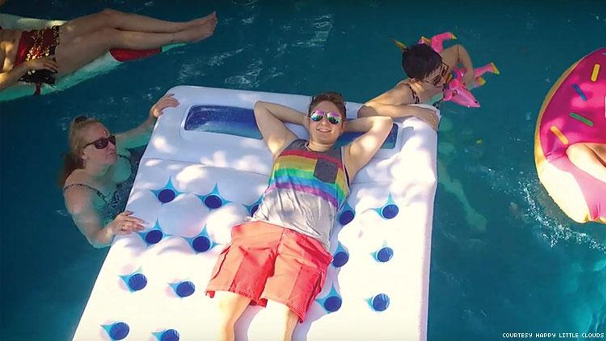 Staying true to their optimism-in-the-face-of-adversity name, Boston-bred indie rock group Happy Little Clouds gives us a fresh take on the struggle to accept one's true gender identity with their new video, "Beneath." The video begins in a dark landscape punctuated by abandoned and dilapidated pools. The sky is gray. The mood is bleak and lonely.