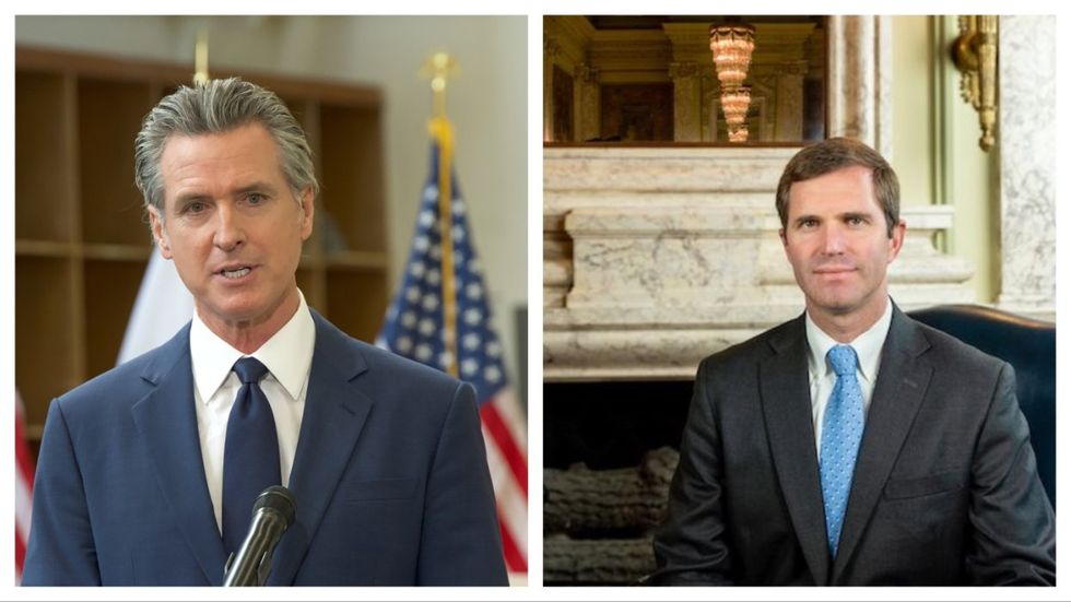 Newsom: Sheila Fitzgerald/Shutterstock; Beshear: courtesy Andy Beshear