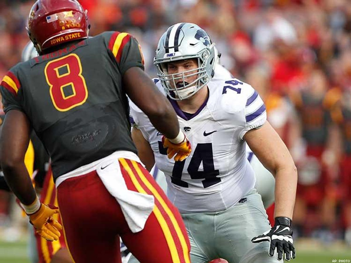 But the fact that college football is having a record year with six out players is a promising trend for the sport in general. Colvin joins other out players including Kansas State's sophomore offensive lineman Scott Frantz (pictured in white and blue), Arizona defensive lineman My-King Johnson (a freshman), University of St. Francis linebacker Kyle Kurdziolek (a junior), Marian University Center Darrion McAlister (a senior), and Capital University wide receiver Wyatt Pertuset (a sophomore).