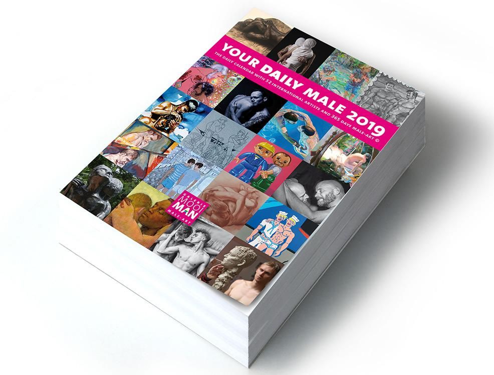 Your Daily Male 2019 is a collaborative project of 52 national and international artists with a predilection for men in art. A varied and wide range of artists not only from Europe but also from Canada, America and even Russia show a work of art every day. The calendar is published in a limited edition in English, French, German and Dutch. The complete publication has been done by MooiMan male-art gallery, the only gallery in Northern Europe with a ongoing male-art theme and also publisher of its own art books. Since its first publication in 2016, the calendar has been included in two museum collections in Berlin, Germany (Schwules Museum) and New York (Leslie Lohman Museum for Gay and Lesbian art).