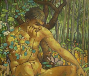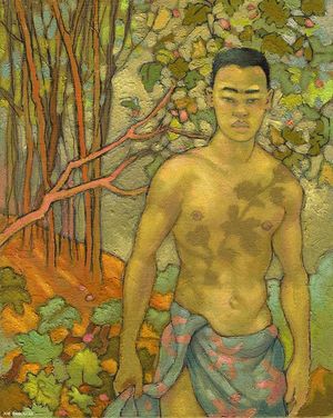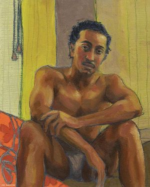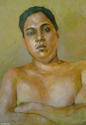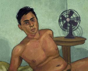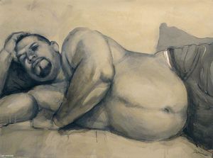 His work varies widely, as he says, "I tend to create bodies of work with vastly different focuses. Moving from decorative small oils, into gestural figure studies, then on to extra-large portrait painting (the portraits are 5 feet high). Then restlessness sets in, a yearning for color, and I return to the small oils again, and so the cycle repeats."
