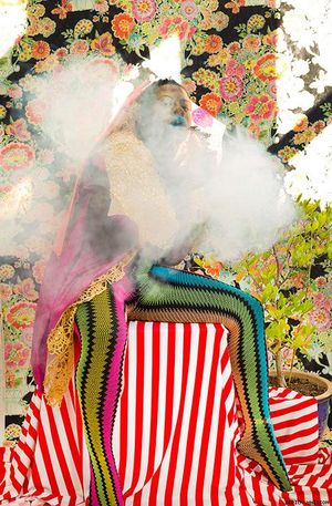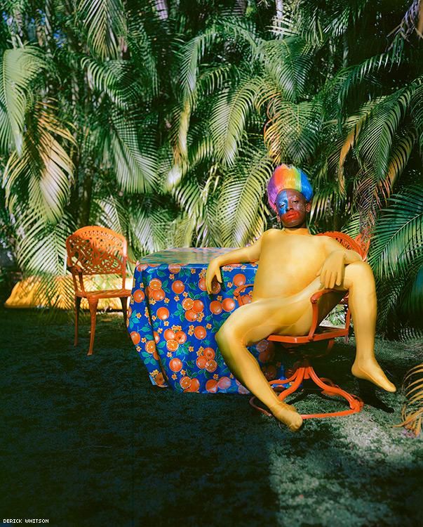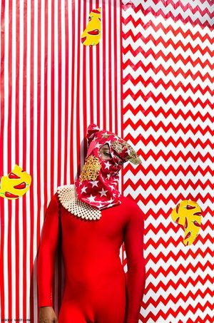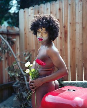 "There are pioneers, subcultures, and individuals that are transforming, and questioning the roles of identity through race in makeup, gender through costuming, and humor/entertainment through pain. The different levels of engagement and infuence hold a large amount of information in standards of beauty traced from all over the world. I use photography to create a new form of identification through methods of masking. This is a form of representation, as an explorative generation of power through image making. There's a need to deconstruct ideologies based on appearance through imagery. I am dissecting the levels of masking. This photographic amalgamation is political, subversive, and affrmative imagery that forms a racial and gender non-conforming empathetic utopia.