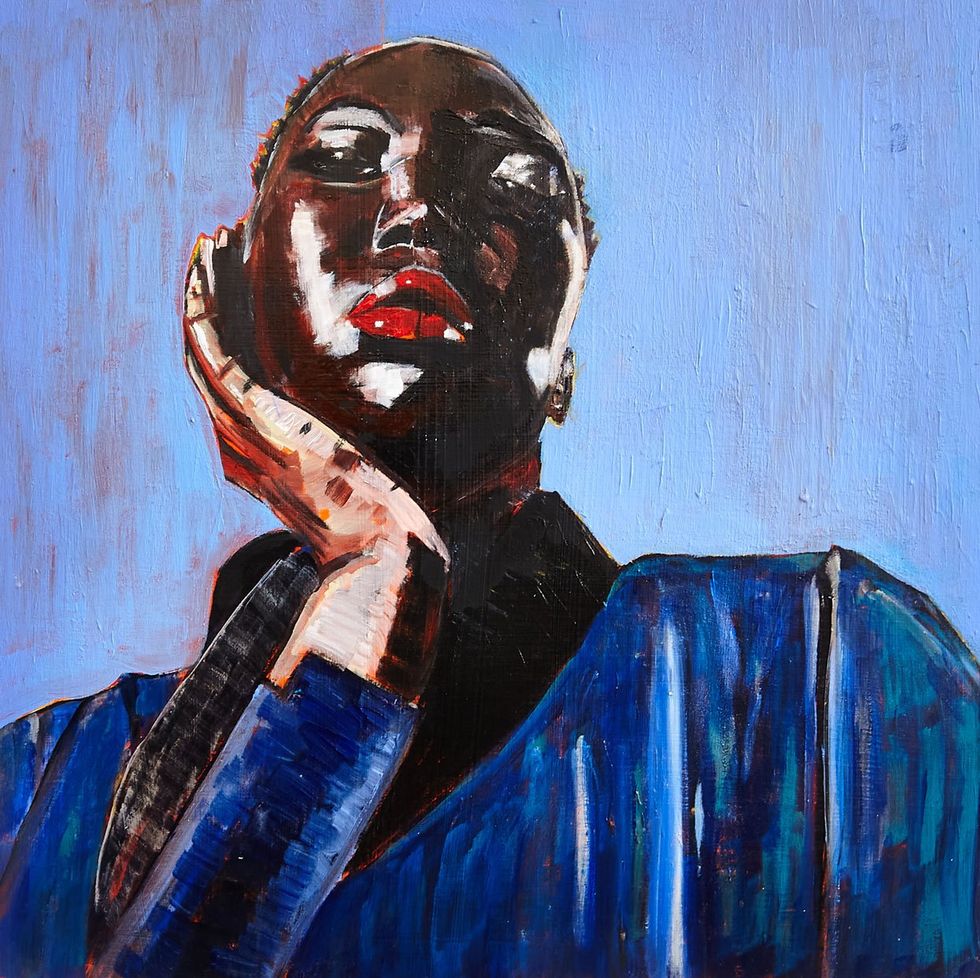 Still, the artist insists there is a beauty to code-switching, which is why Hershman wanted to create imagery that also felt joyous for this collection. Indeed, the vivid colors and brushstrokes of the paintings seem to leap off the canvas and into one's heart and mind in a truly visceral way. “The flip side of code-switching is going back to your home…going back to our families, going back to our friends, and being able to be and speak and act as who we really are.”