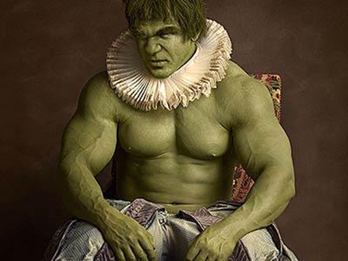 Sacha Goldberger weaves together technique and disparate content for an exquisitely deadpan effect. Light, shadow, and fichu collars allow these defenders of right to take a break and reveal themselves as human. See more about Goldberger here.