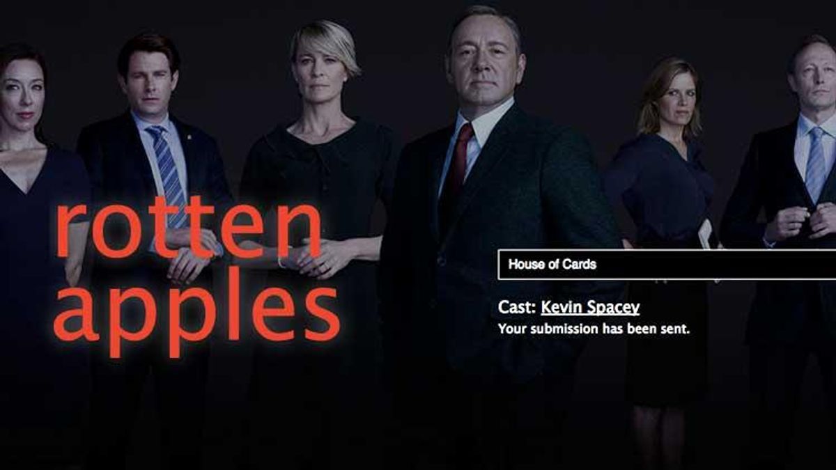 But it's not just film. The TV section is already rather comprehensive. Searches for Transparent and House of Cards turn up "rotten apples" scores for their predatory lead actors, while a show like the CW's Arrow gets a rotten rating for producer Andrew Kreisberg's history of harassment.