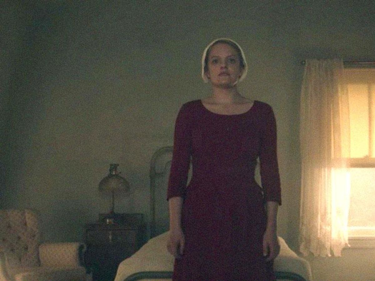 At first glance, the new short teaser featuring the show's star Elisabeth Moss as Offred, one of the women forced to serve as a vessel based on the viability of her reproductive organs in the Republic of Gilead (a not-so-distant future United States), doesn't offer much information. But at a closer look, the teaser draws a firm then-and-now distinction, cutting from Offred's life before the takeover by a fascist, racist, xenophobic government and since. The teaser shows a snippet of Offred (meaning "Of-Fred," the commander she's assigned to bear a child for) before the takeover, beaming with the child she loved, then cuts to her buttoning into the restricting red costume assigned to handmaids, who, if they are able to bear children, will never raise them.