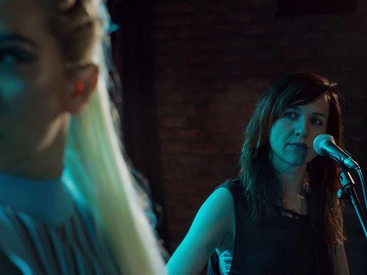 While Hedwig is operatic in its exploration of identity, Becks is more muted and subtle, yet Hall's capacity to evince an internal journey is no less affecting. Midway through Becks, her character, who's managed to piecemeal together an income gigging out at a dive bar and offering guitar lessons, is about to perform with a student who's also the wife of her high school nemesis, played with a lovely openness by Mena Suvari. Prior to the gig, Becks assesses herself in the mirror, slicks her hair back and dons a vintage leather jacket, telegraphing an external confidence that will later show up in their visceral love scenes that Hall said were the first they shot together when she was still nervous about her transition from stage to screen.
