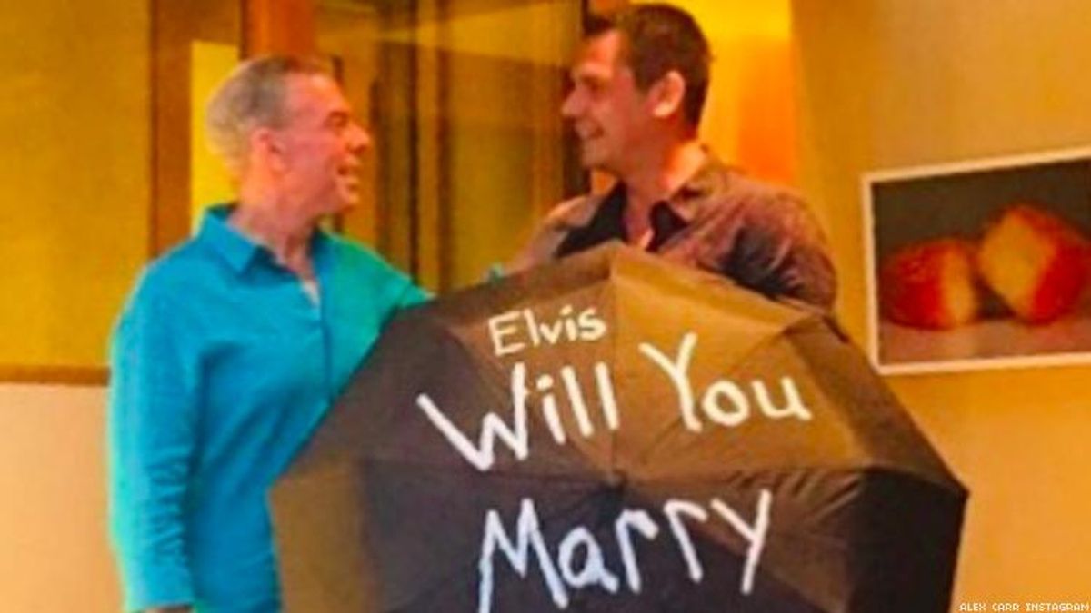 Veteran radio personality and a host on New York City's Z100, Elvis Duran became engaged on Friday the 13th when his boyfriend Alex Carr popped the question with the help of an open umbrella with "Elvis, Will You Marry Me?" on it, according to People.