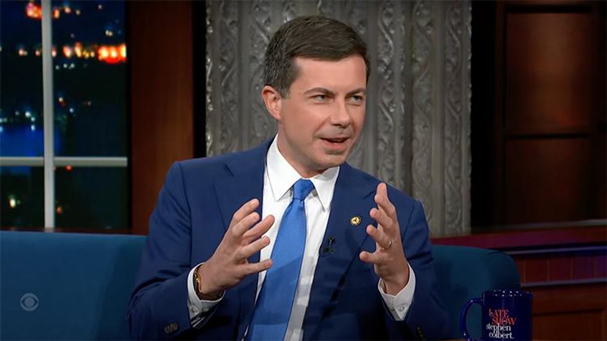 Transportation Secretary Pete Buttigieg is excited about building stuff. That's the message he sent during an appearance on The Late Show with Stephen Colbert.