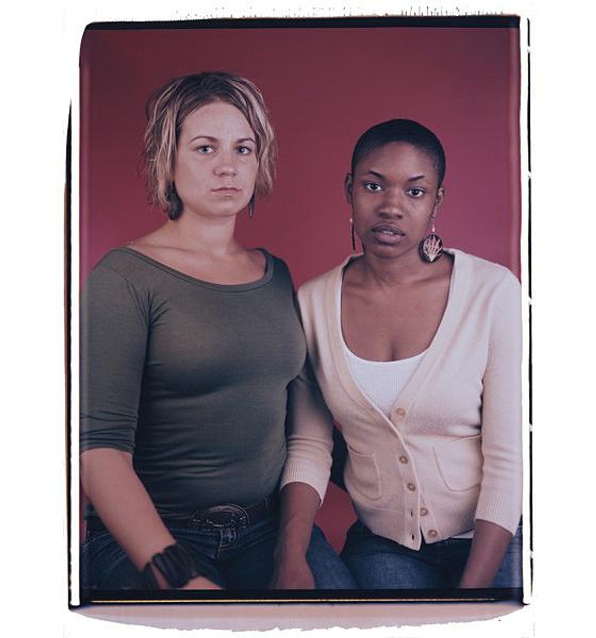 Coupled is a series of 20 large-format Polaroid photographs of queer couples, taken between 2006 and 2008. Every person has some connection to a female identity, whether past or present. The images are direct and posed, with the same lighting and bold red background in each image in an attempt to direct the focus entirely onto the subject. The couples are simultaneously unique and similar, becoming almost specimens of a cultural group through repetition of composition. While the images portray a specific group of couples at a historic time, they also raise universal questions about attraction, love, and the nature of relationships.