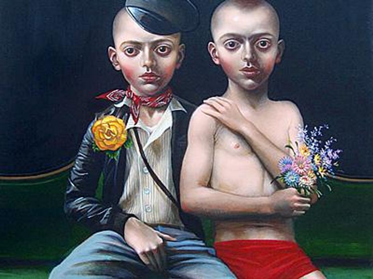 Cummings' work is more polished now and the details of his paintings are exquisite. He is a successful artist that shows nationally. He has a fascination with period detail and costumes. His children have 5 o'clock shadows and his adults have doll's bodies. Both seem to have wounds of experience and dark knowledge.