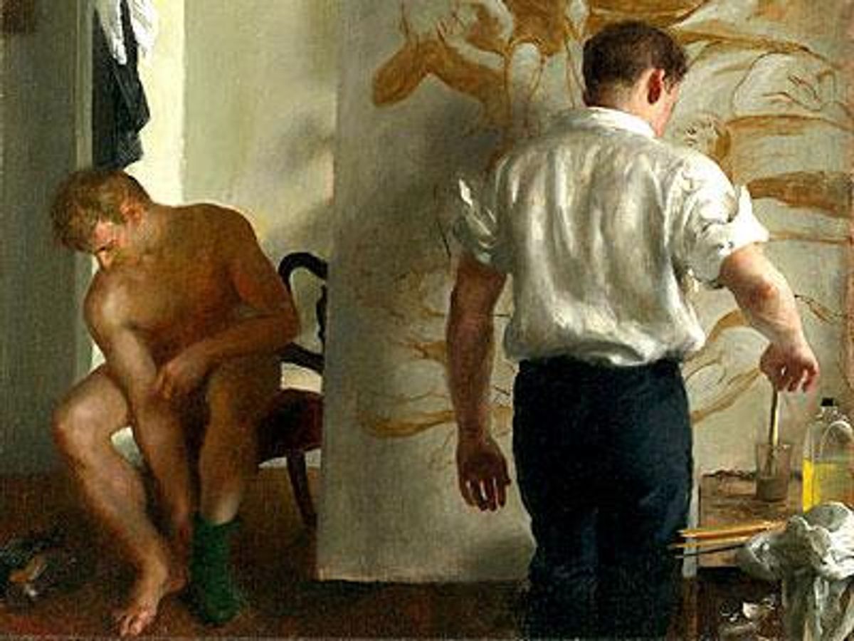 But beyond the well-heeled devotees who were certain they were upholding "tradition" there are the sensuous nudes. They dare us to believe that the story ended with a shared cigarette in a dusty studio, the smell of oil paint and the setting sun catching the model and artist in an intimate moment.