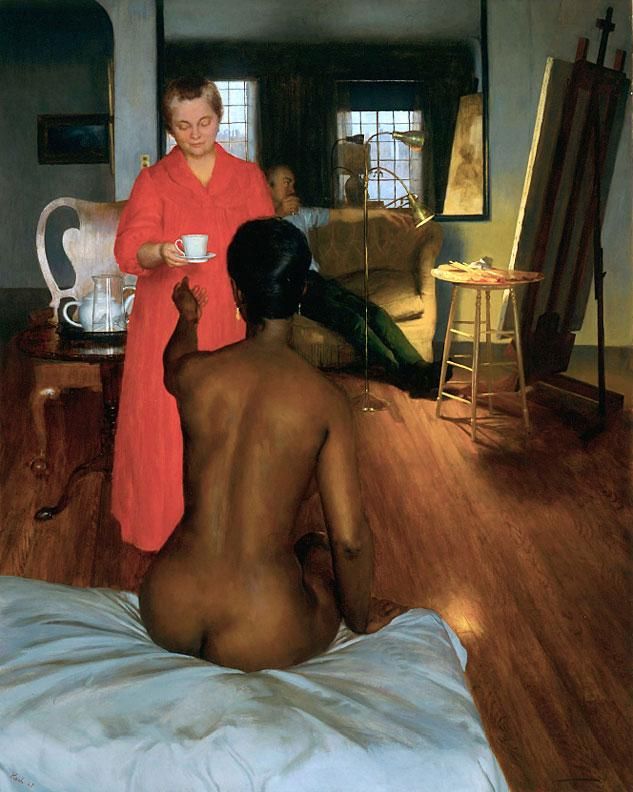 My Studio, 1952 once again portrays artist, wife looking a decade older then artist, and a model who looks as if she stepped out of a Fragonard painting.