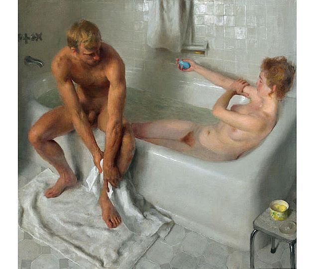 But beyond the well-heeled devotees who were certain they were upholding "tradition" there are the sensuous nudes. They dare us to believe that the story ended with a shared cigarette in a dusty studio, the smell of oil paint and the setting sun catching the model and artist in an intimate moment.