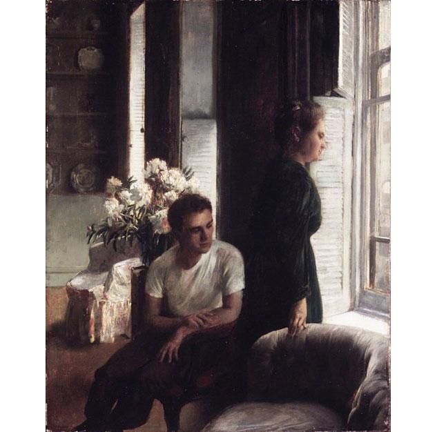 The Window, 1947. Female figure on right is believed to be Dora Koch, his wife, but who is the young man who makes repeated appearances? Is he the young man in the pevious painting The End of the Day?