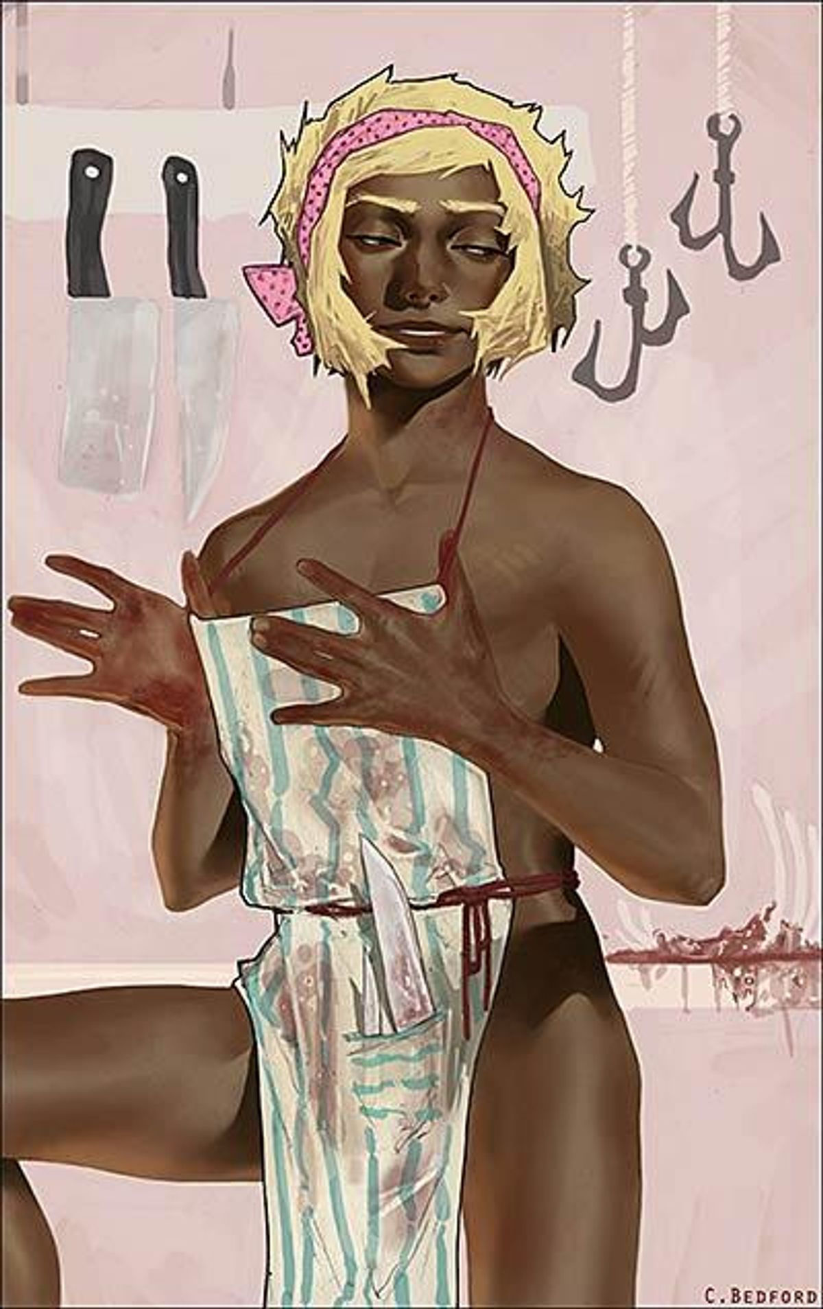Eventually, we were curious as to C. Bedford's gender, and this was the interesting reply: "I typically stay gender neutral online or when I'm not physically present at a place. This more has to do with people's perception of others and attaching those qualities to other things they do in life or what they create. And though my gender has affected how people treat me in the world (which would alter my own perceptions of how the world is); I also feel that my gender has little to do with the subjects of my work or why I choose to paint what I paint. It's not that I don't feel that I'm the correct birthed gender or anything, but rather I don't really understand what's so different about being male or female mentally. I've also had people in the past treat me differently or just automatically assumed things when they learned what gender I was, so I usually refrain. I think 'they' or 'them' would work fine. It's not that I'm trying to make a point or statement about gender, though this is a topic that comes up incredibly frequently given the nature of my work, so I suppose a point will be made regardless. My art is more important to me than my gender, and I think people should try to understand it for what it is, rather than trying to break it down by applying my physical attributes to 'decode' whatever it is I've made with stereotypes. I hope this isn't all confusing. I know it shouldn't be a big deal, but I've always had trouble physically associating myself with my work. I'm trying to get over this."
