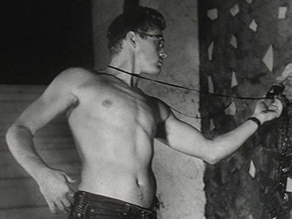 Schatt's legendary photos depict a man who was both his friend and his photography student. The images encompass the iconic "Torn Sweater" series as well as Dean in personal moments playing the bongos and pretending to steal candy from a newsstand. The exhibition also includes photos by Dean as he practiced the art of photography using Schatt and actor friends as his subject.