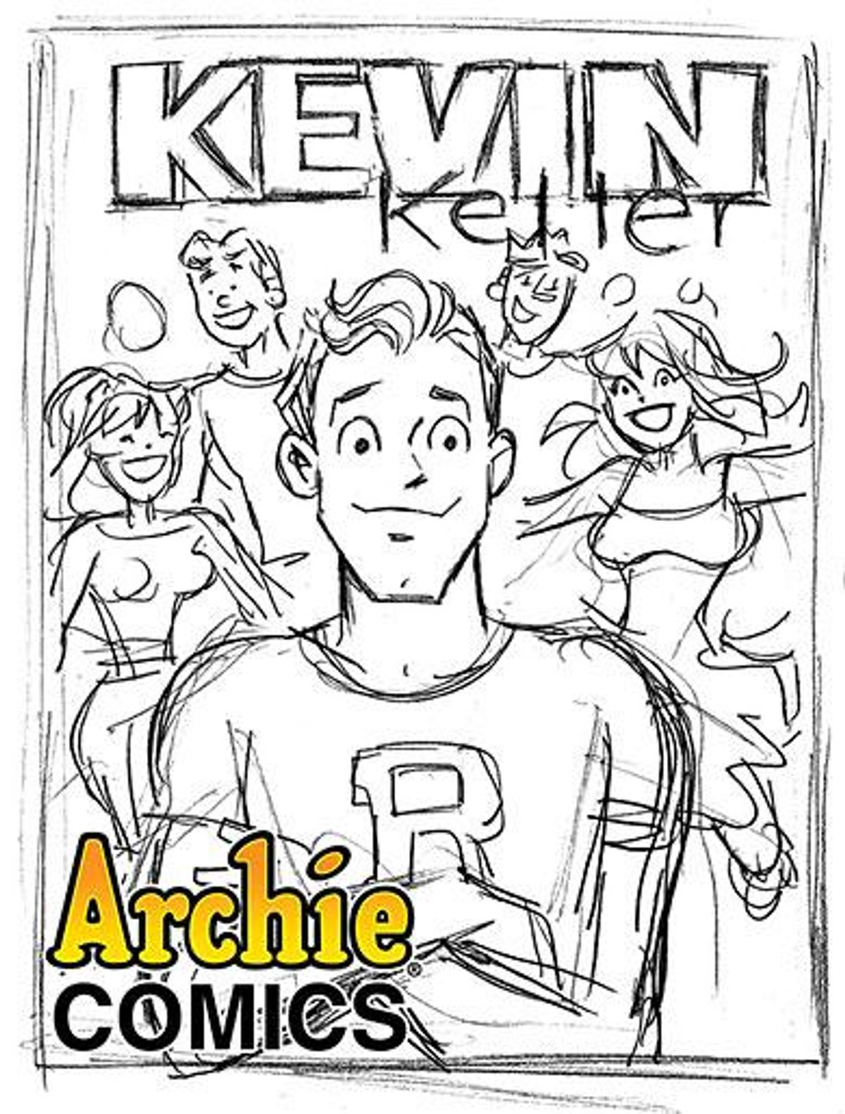 Life With Archie, which projects two future paths for Archie Andrews -- he's married to Betty in one, Veronica in the other -- will offer a look at Kevin's adulthood and marriage early next year. "We needed to figure out how to get Kevin into that book and, frankly, not sidestep the issue," Goldwater said. "It deals with the fact that he's a gay man and has gay relationships." He added that there has been little negative reaction to Kevin: "Out of all the people who subscribe to the Archie books, we only had seven total cancellations."
