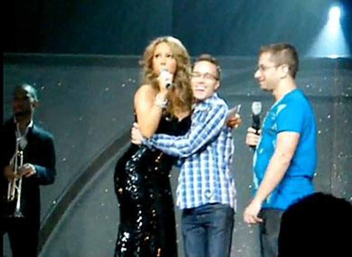 Maurie Sherman: He's a huge Mariah Carey fan. I love him to death and would do anything for him and I thought, if given the opportunity, I would love for him to meet Mariah. So when they announced these intimate Vegas shows -- I mean 5,000 people -- I thought maybe there is this chance. It took me six months to do and I didn't know we'd be doing it until five minutes before the show started. He had no idea until they started talking onstage. Her people brought us to the side of the stage, so I said, "[Your] birthday is next month, so happy birthday! I'm going to get you to meet Mariah and you'll get a quick picture."