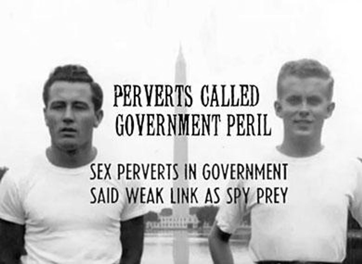ABC News has a profile of Howard and the subjects of his film, such as Joan Cassidy, now 84, who left her post as a U.S. Navy intelligence officer after President Eisenhower issued an executive order in 1953 ordering the dismissal of all gays and lesbians employed by the U.S. government. The excuse was that gay people would be targets for blackmail and therefore likely to expose state secrets. "We were supposed to be in touch with the Russians," Cassidy told ABC News.
