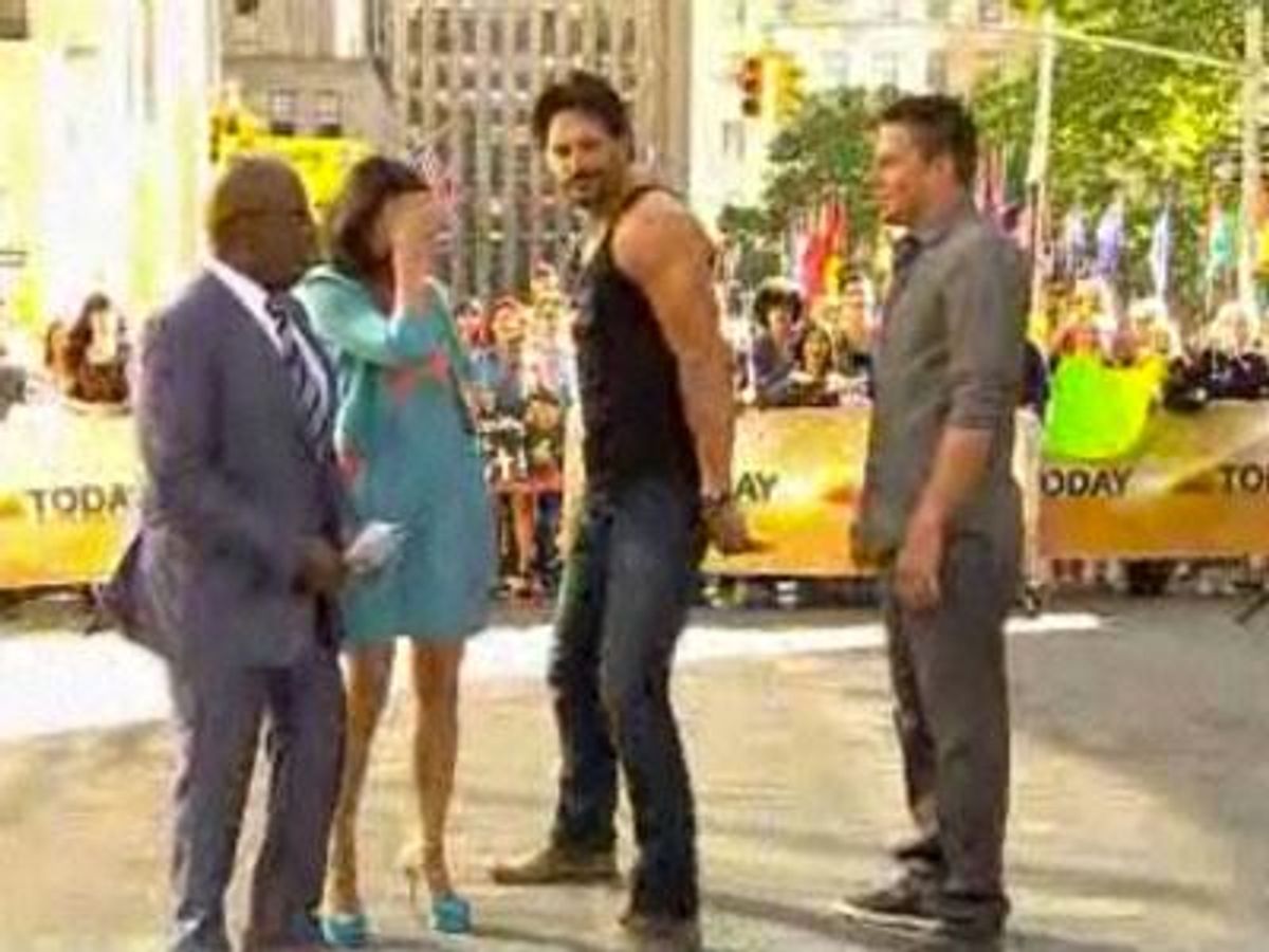 Step aside Joe Manganiello, Channing Tatum has some dancing to do. The two heart throbs appeared on NBC's Today to promote Magic Mike, their comedy about male strippers, which opens Friday. After Manganiello demonstrates his expertise with body rolls to distract hosts Al Roker and Ann Curry, Tatum leads a flash mob through a routine choreographed to the Weather Girls' durable anthem "It's Raining Men."