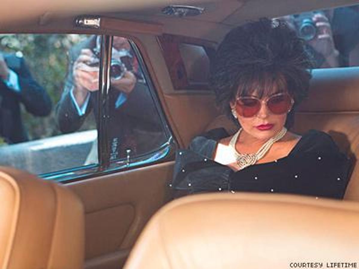The three new photos show Lohan as Taylor during three different periods of her life. The Lifetime movie chronicles the tempestuous romance between Taylor and her Cleopatra costar Richard Burton (played by True Blood's Grant Bowler) in a behind-the-scenes drama that unfolded in newspaper headlines across the globe and ultimately proved to be much more riveting than the actual 1963 epic. One photo shows Lohan in costume as Taylor as Cleopatra, another shows her with costar Bowler replicating the couple's famous nuptials in Montreal, and the third has Lohan as early-'80s Taylor looking somber in the back of a limo.