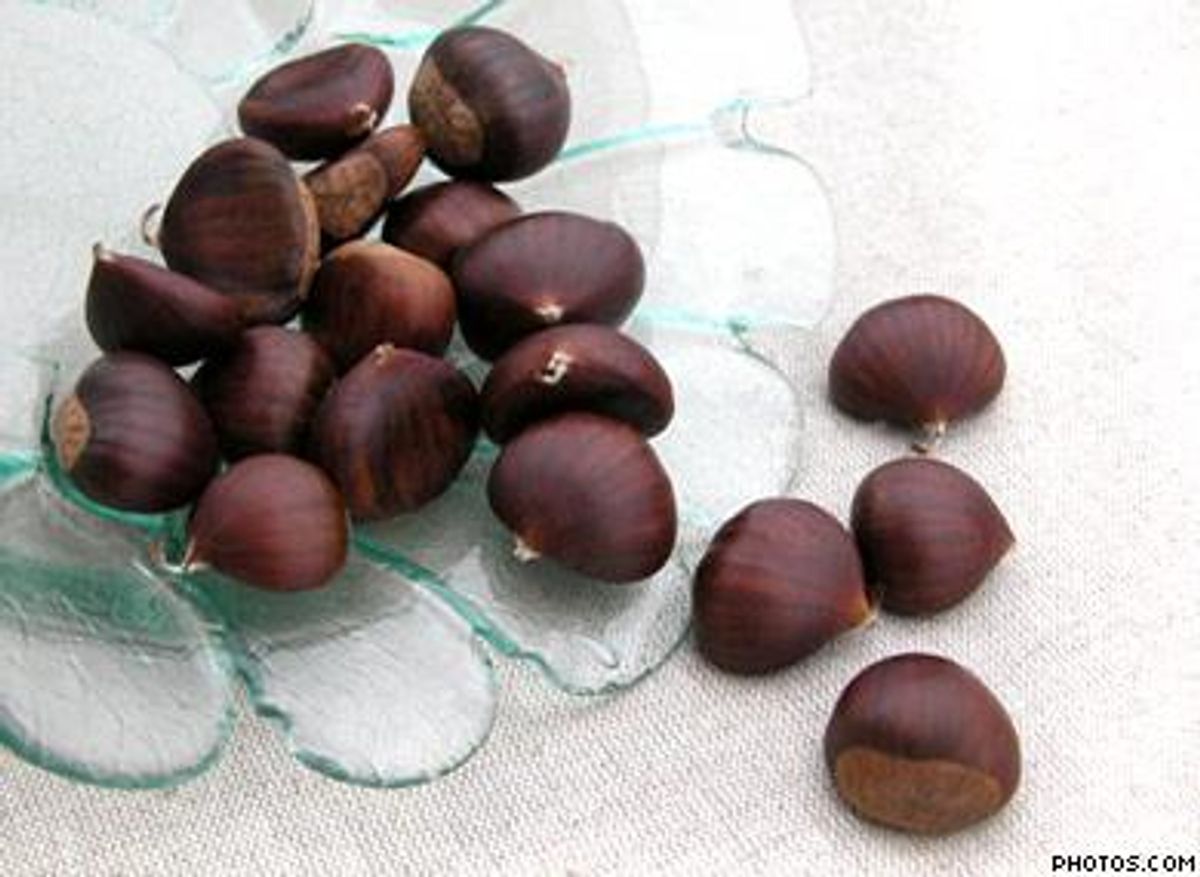 Chestnuts are a holiday treat across the globe. We sing carols about roasting them at Christmastime, the French spend days candying and drying their marrons glaces for the holiday season, and no Japanese New Year is complete without these symbols of wealth. But chestnuts weren't always relegated to special celebrations. In Europe for thousands of years they were thought of as food for the poor -- a sweet, starchy, and abundant substitute for wheat. Perhaps the difficulty of preparation in these fast-paced times has made them more of a rarity on the American table. But there are some good-quality preroasted and peeled products from France and Italy. Peeling them with the right technique, however, can be easy and satisfying: Make a deep x in the curved part of each shell, drop into boiling salted water, and cook for three to five minutes. Turn off the heat and remove one by one so they stay hot and hydrated. Peel using latex gloves and a paring knife. The inner skins should rub right off.
