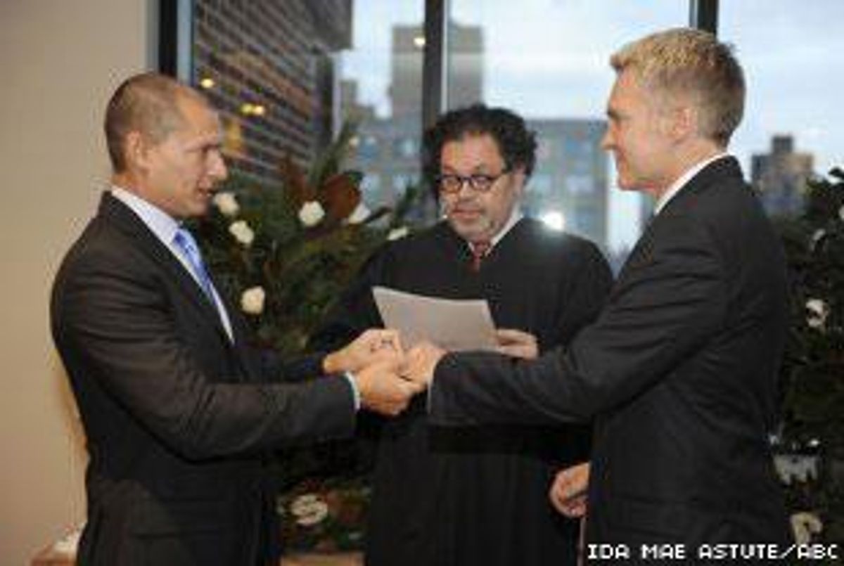 Champion came out in October in a New York Times story about another television anchor's marriage -- Thomas Roberts of MSNBC and Patrick Abner. Champion had attended their wedding and then mentioned his own engagement to Rubem Robierb, a Brazilian-born artist.