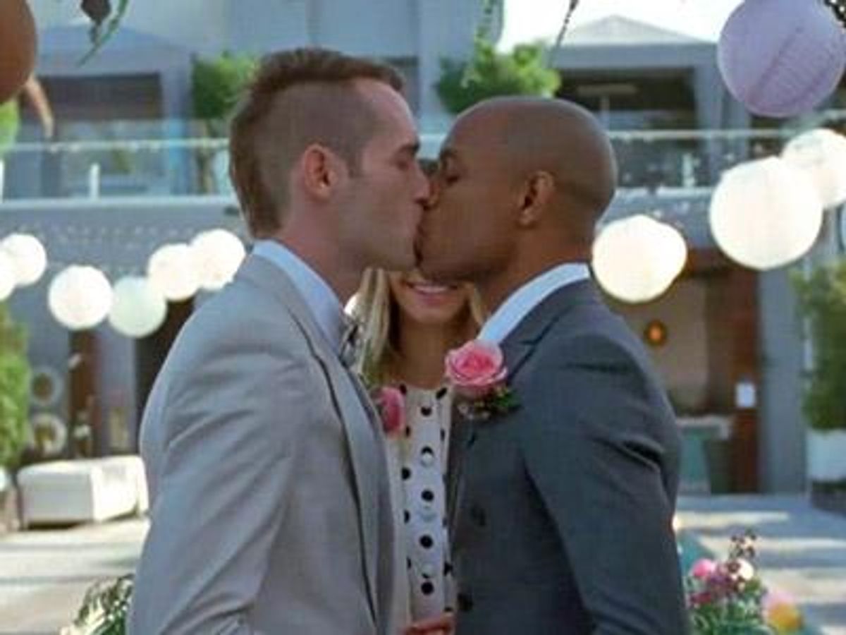 The gala wedding scene features a bevy of LGBT guest stars including musician and former L Word actress Leisha Hailey and season three RuPaul's Drag Race finalist Manila Luzon. Of course, stunning JHud, too, joins the fun.