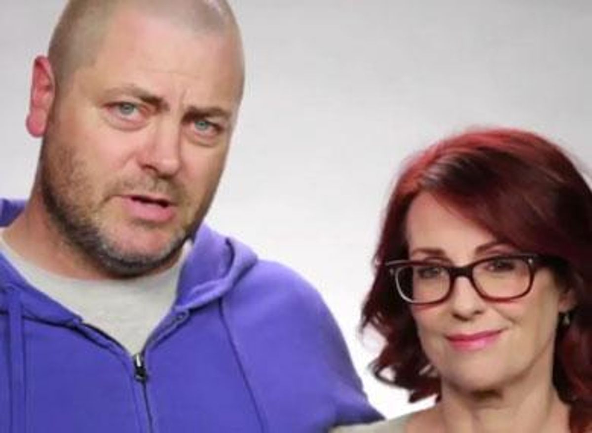 Actors Megan Mullally and Nick Offerman wonder why gay and lesbian couples who have literally spent their whole adult lives together can't get married when any random man and woman can show up at a Las Vegas chapel and tie the knot.