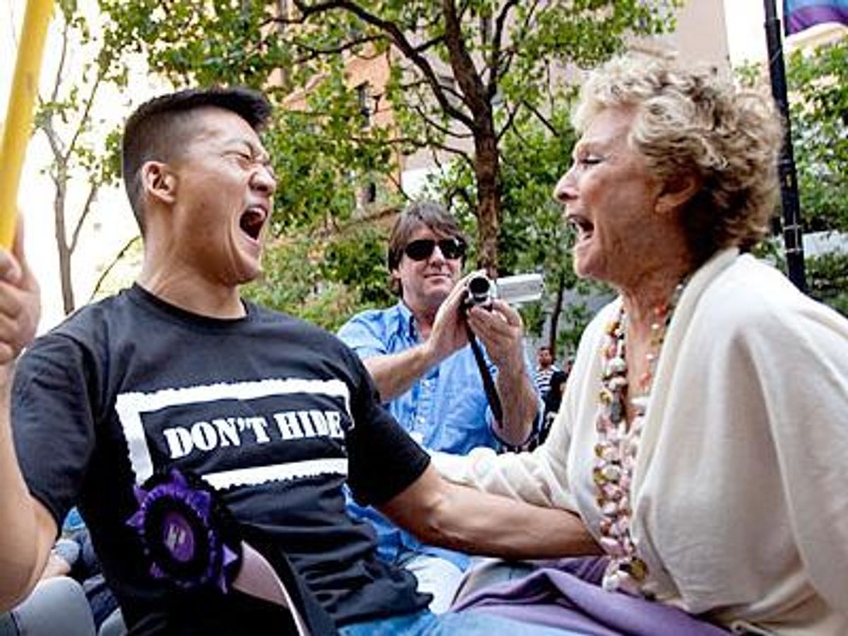 Celebrity Grand Marshals Lt. Dan Choi, a graduate of West Point, and Academy Award-winning actress Cloris Leachman take part in the 39th annual gay pride parade.