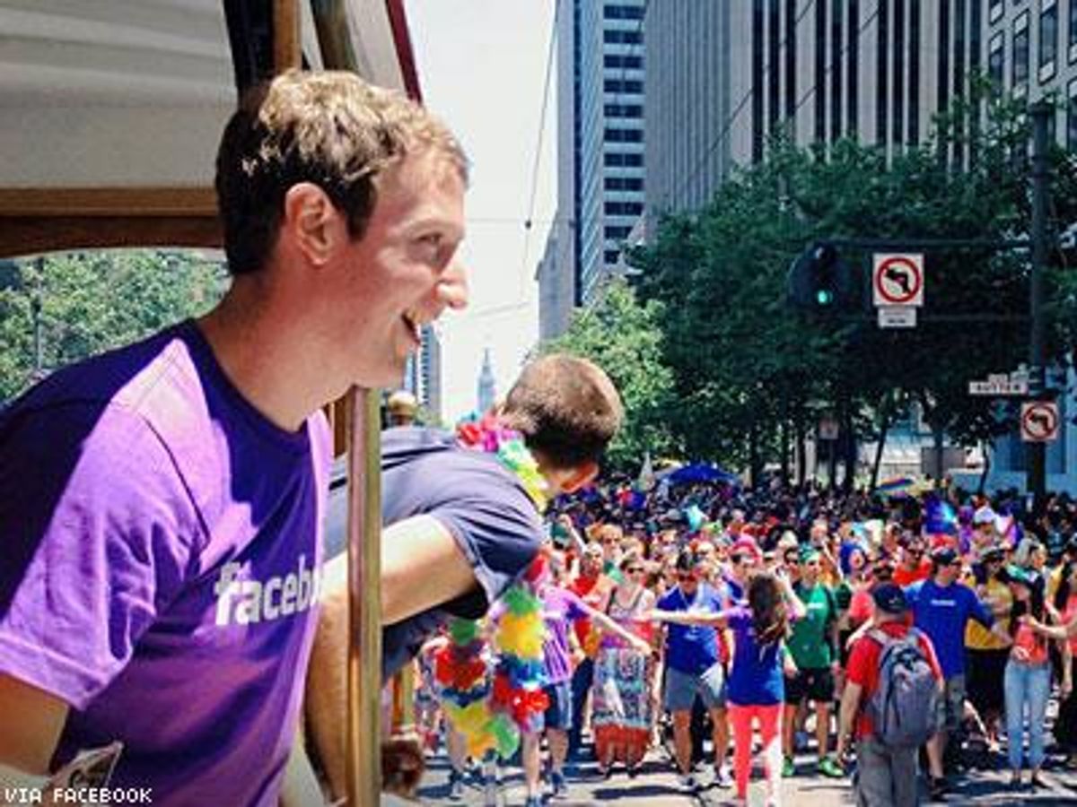 Even Facebook CEO Mark Zuckerberg joined in the celebration, stepping out from Facebook's Silicon Valley headquarters to march alongside 700 Facebook employees in the founder's first Pride parade.
