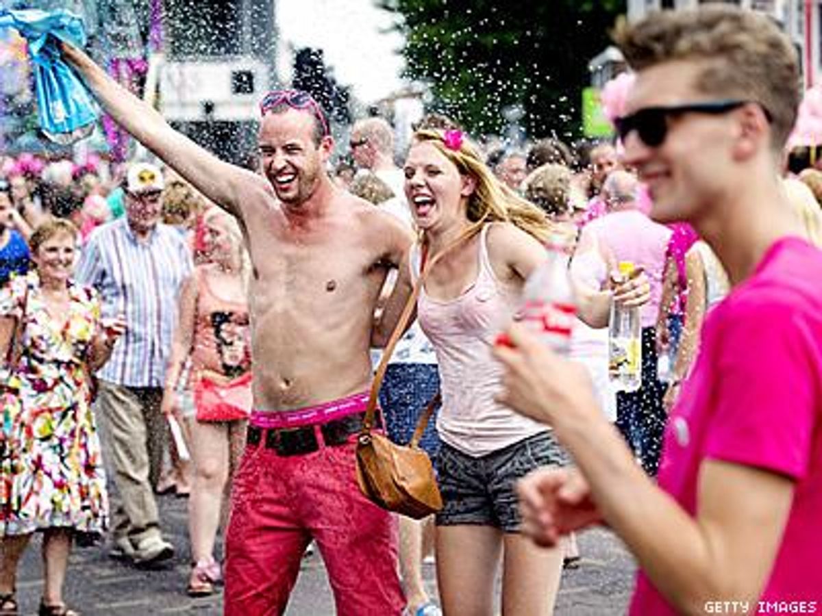People take part in "Pink Monday, " part of Tilburg's 10-day-long funfair, the biggest in the Benelux, on July 22. The celebration of gay pride runs from July 19 to 28.