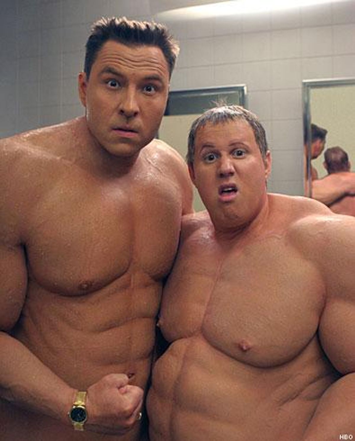 After abandoning the idea of featuring only American characters for the show, Walliams and Lucas decided to mix old favorites with some new creations. So don't be surprised to see Daffyd thinking he's "the only gay" at his new U.S. university or Marjorie bringing her vitriol to American fat fighters. (One episode features Rosie O'Donnell as the new Fat Fighters celebrity spokesperson, prompting Marjorie to ask, "Are you fat because you're a lesbian, or are you a lesbian because you're fat?")
